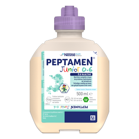 Notre gamme offre des solutions pour les adultes et les enfants à partir de 1 an. Dans la gamme adulte, nous disposons d'aliments à boire et d'aliments par sonde de 1,0 à 2,0 kcal/ml et proposons des aliments avec des niveaux de protéines de 16 à 37 % des besoins énergétiques totaux. Pour les enfants à partir de 1 an, nous disposons d'une alimentation par sonde qui augmente les calories de 0,6 kcal/mL, à 1 kcal/mL et à 1,5 kcal/mL. En outre, nous disposons également d'une solution, le Peptamen® Junior 1.5, qui peut être utilisée par voie orale ou via la sonde.